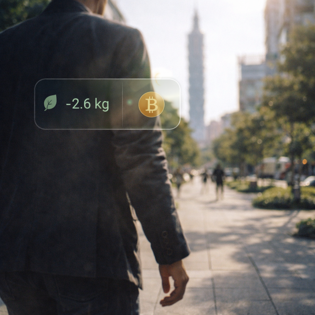 將減碳行為數位資產化:步行與惜食點數可換取比特幣,並首創兌換比特幣與商品折扣,提升全民永續誘因。