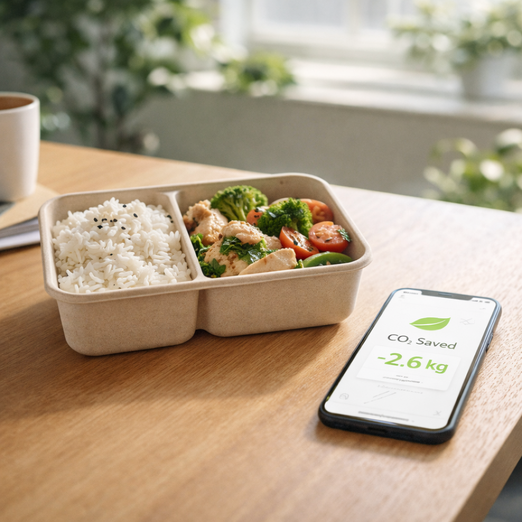 針對中小型餐飲業,開發一套結合 App 與減碳地圖的系統,鼓勵消費者透過步行取餐、選擇惜食餐點、使用環保餐具等行為累積減碳點數。